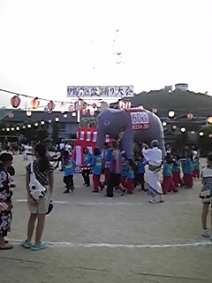 2013年08月17日(土) 活動日記 中四国大会&伊島盆踊り大会 夜は伊島学区の30回目の盆踊り大会へ。会場には多くの子供たちも来ており、夏休みの良い思い出になったでしょう。中学生も含め関係者の皆さん、お疲れ様でした。また、会場には池田動物園の60周年を祝う像?も現れました。