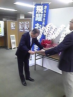 朝より市長選挙立候補予定者『大森まさお』氏に我が会派(自民党岡山新風会)より推薦状を手渡しました。我が会派としては、全員で、全力で応援することを約束しました。