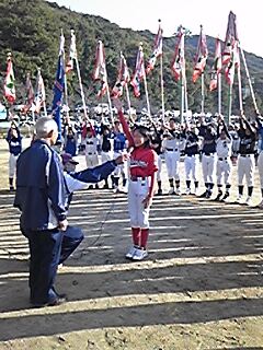 その後、再度錬成大会へ。この大会を目標に一年間頑張ってきたので、選手は気合が入り過ぎ、緊張のし過ぎです。結果的には先制しながらも最終回に追いつかれ、抽選へ。日頃の選手の努力が神様?にも認められ、運よくベスト16へ進出。