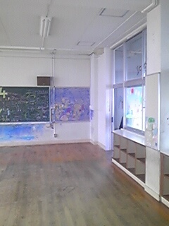 その後、耐震工事のために校舎を解体する伊島小学校へ。今日で2学期も終わり、3学期からはプレハブ校舎に移ることから、児童が黒板や壁や窓ガラスに感謝の気持ちを書き尽くしており、さみしい気持ちが伝わって来ました。