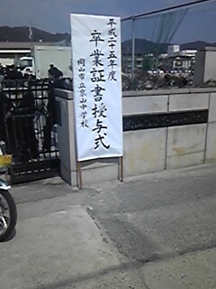 2014年03月15日(土) 活動日記 中学校卒業式 朝より中学校の卒業式へ。295名の生徒が楽しかった中学校を巣立って行きました。この子たちは東日本大震災の直後に入学し、命の大切さ絆の大切さを学び、東日本の中学生と交流するなど多くの事を経験した世代です。今後の岡山市のため、日本のために頑張ってほしいです!その後、ソフトボールの練習へ。6年生にとっては、明日が卒団式ですので最後の練習です。いつも以上に伸び伸びプレーをしながらも、打てずに悔しがっていました。練習後には自分たちで倉庫の片付けを!成長したものです!!!