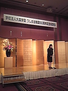 その後、つしま幼稚園創立50周年記念祝賀会へ。約100名の方が集まり大盛会で、読み聞かせやスライドショーなどの時間もあり幼稚園らしい柔らかく暖かい会でした。80周年・100周年が迎えられることを願います。