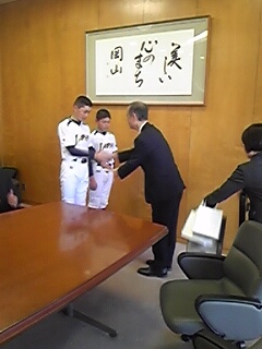 夕方には、少年ソフトボールの岡山選出のJAPANメンバーが市長を表敬訪問。春休みに開催される世界大会に出場するメンバーですが、良い思い出を残して欲しいと思います。