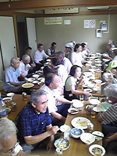 その後、男性料理教室へ。21人の男性が10人の女性に料理を教わります。味ききの時は、大丈夫かなぁ、と心配でしたが、やはり大勢で食べると美味しいです。