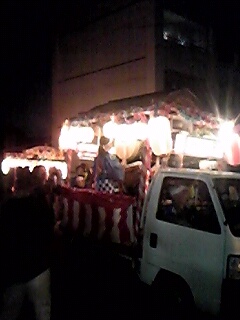 夜は尾針神社の秋祭りへ。伊島学区の各町内よりだんじりが神社に集まるため、観客も多く盛大です。地域の安全を願いました。