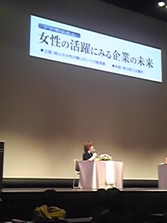 その後、シンポジウムへ。岡山市が力を入れている『女性が輝く世の中』について、『女性の活躍にみる企業の未来』をテーマにパネリストの皆さんの意見を聞かせて頂きました。