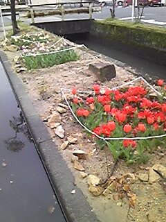 その後、チューリップを確認へ。地域の憩いの場を作るために、地域の皆さんがご尽力。開花して良かったです!