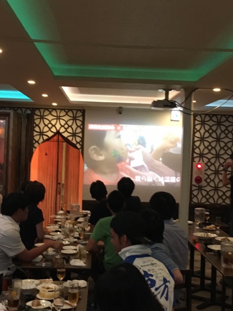 その後、うらじゃ打上げへ。同じ化粧部会のメンバーが集まり、当日の映像などを見たりして、盛り上がりました。このうらじゃには多額の市費(税金)を投入していますが、充分に価値あるイベントになっていることを確信しました。