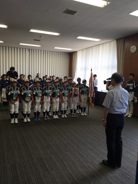 その後、表敬訪問第一弾。少年男子が琵琶湖大会優勝の市長への報告です。このチームは実力はありましたが、結果が出ず、最後の大会で優勝という結果を出しました。『努力は裏切らない』と言うことがわかったと思うので、これからの活躍期待します。