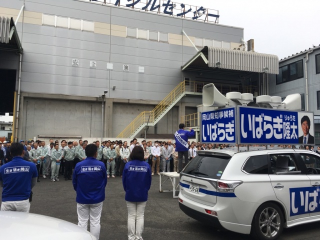 朝より選挙応援へ。選挙カーと一緒に4カ所まわり、応援演説を。内容は岡山市管理の岡山城と岡山県管理の岡山後楽園での幻想庭園などの連携イベントの開催、落ち着いた学校生活をおくらせるために警察関係者の学校派遣や市内巡回強化など、いばらぎ候補の1期目の決断力とリーダーシップをしっかりアピールさせて頂きました。