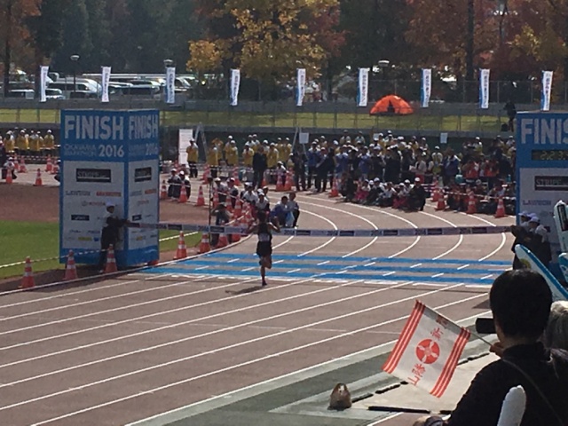 自分が走り終わり、ゴールの現場へ。前回よりも早いタイムでのゴールの瞬間に立ち会えることが出来ました。おめでとうございます!