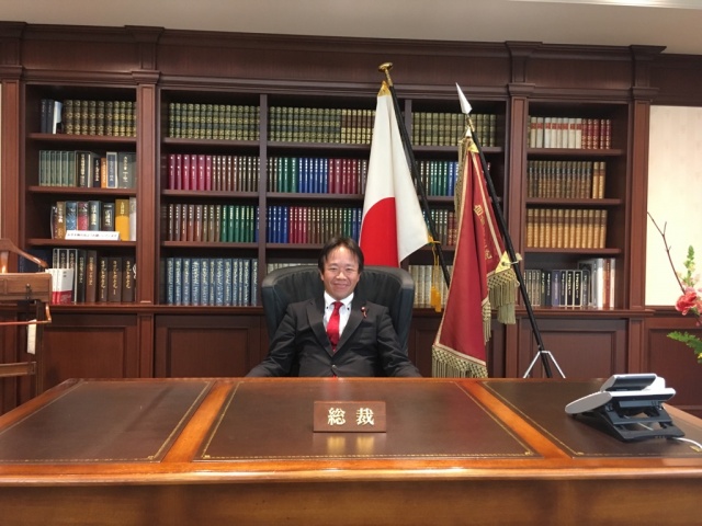 その後、ちょっとだけ総裁室を訪問。お言葉に甘え、席に座らせて頂きました。