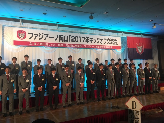 その後、ファジアーノ岡山「2017年キックオフ交流会」へ。約300名の方が集まり、ファジアーノ岡山への激励をしました。今年度こそはJ1にあがって欲しいです。
