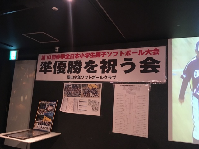 2017年05月27日(土) 活動日記 総会&運動会&準優勝を祝う会 その後、準優勝を祝う会へ。春の全国大会で準優勝した岡山少年ソフトボールクラブの選手のお祝い会で、大いに盛り上がりました。選手たちのこれからの活躍を多いに期待します!