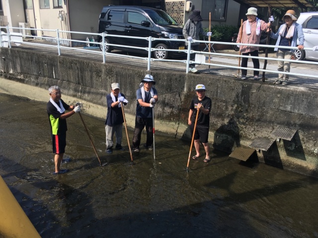 その後、川そうじへ。お祭り片付け終了後、町内の方々と川に入り、年に1回の藻がりを。藻の多さと暑さと昨日からの疲れもあり、正直相当にこたえましたが、他の皆さんも一緒です。皆さん、本当にお疲れ様でした。