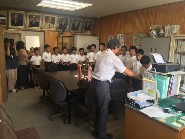 その後、小学校へ。先日の大会で準優勝をしたことの報告を校長先生にし、激励の言葉を頂きました。子供たちはかなり緊張していました・・・。