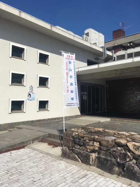 その後、岡山大学へ。昨年の県知事選挙に続き、今回の市長選挙も岡山大学敷地内に開設された本日1日の期日前投票所へ。大学生の皆さんがスタッフをしてくれておれ、何か雰囲気が違っていました。また、近所の方々とも会場周辺ですれ違い『近いし、ここは行きやすい』との言葉が。山の上にある小学校での投票所よりも行きやすいことは間違いありません。