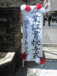 2011年03月18日(金) 活動日記 ダブル卒業式 まずは伊島小学校の卒業式へ参加。154名の生徒が巣立っていきます。卒業生と在校生の別れのことばは感動しましたし、あの練習量は相当のものであると感じました。終了後すぐに津島小学校へ。ソフトボール関係の教え子がいることより、見送りに参加。ユニフォーム姿と制服姿は改めて違うなと感じますし、成長したなと感激しました。ご卒業おめでとうございます!!!投票日まで、あと24日です!