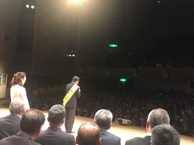 夜は決起大会へ。約1600名を超える支援者が集まり盛大に開催されました。盛り上がって来ました!