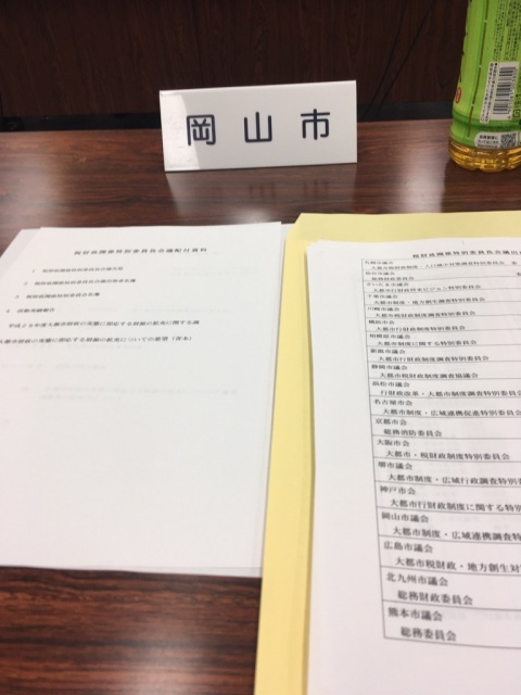 その後、東京へ。税財政関係特別委員長会議に出席。政令指定指定都市20市の委員長と担当職員などが集まり、国への要望や、各党の国会議員への要望活動などについても確認。
