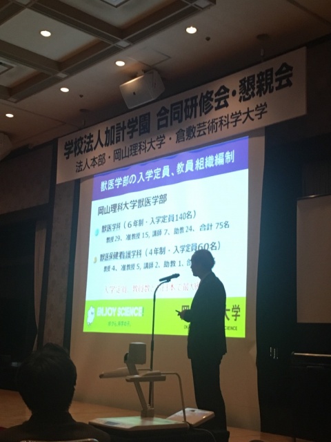 夜は加計学園の研修会&懇親会へ。学長より新設の獣医学部の説明があり、また加計理事長より挨拶もありました。