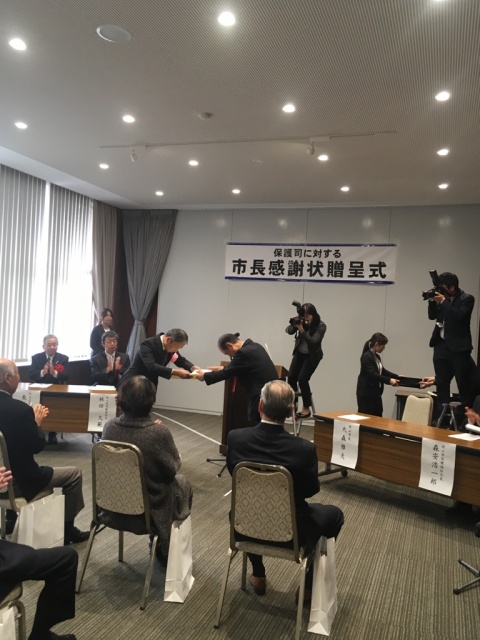 その後、感謝状贈呈式へ。保護司活動10年の先生方に、市長より表彰状などが渡されました。これからも再犯防止のために頑張って頂きたいです。