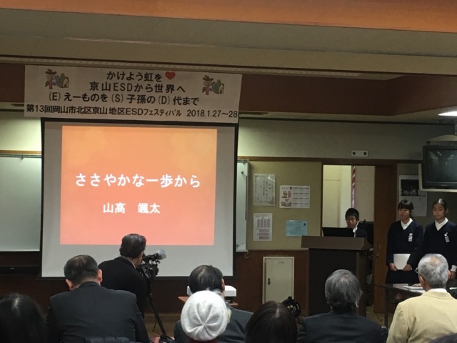 その後、京山地区ESDフェスティバルへ。市長や教育長や担当職員はもちろん、岡山大学の学長や学校関係者など交え、地域の児童や生徒の想いを聞かせて頂きました。みんな、本当にしっかりしており、頼もしい限りです!!