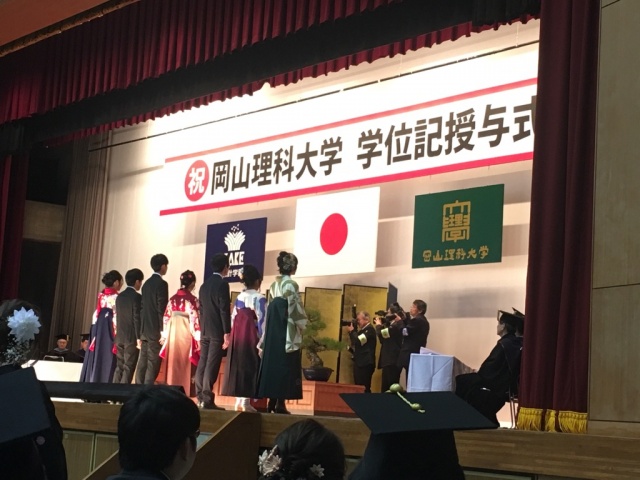 その後、卒業式へ。岡山理科大学の学位記授与式に出席しましたが、これからの日本、岡山市を支えてくれる皆さんです。厳しい社会ですが、明るい未来を切り開いて欲しいです。