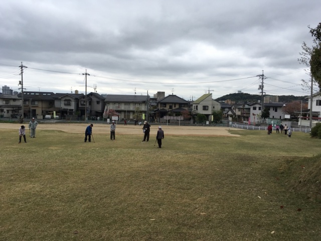 朝よりグランドゴルフ&花見へ。久しぶりのグランドゴルフを地域の皆さんと32ホール一緒に楽しませて頂きましたが、皆さんよく歩き・走り、お元気です!