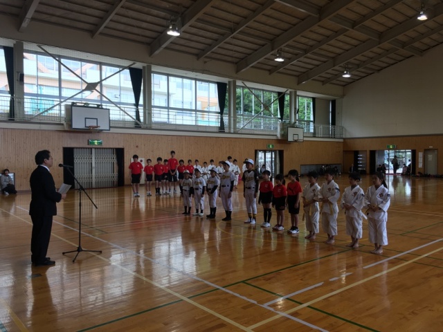 朝より入団式へ。津島スポーツ少年団へ新しいメンバーも加わり、平成30年度が始まりました。学校生活では経験出来ないスポーツの良さを教えていきたいです。
