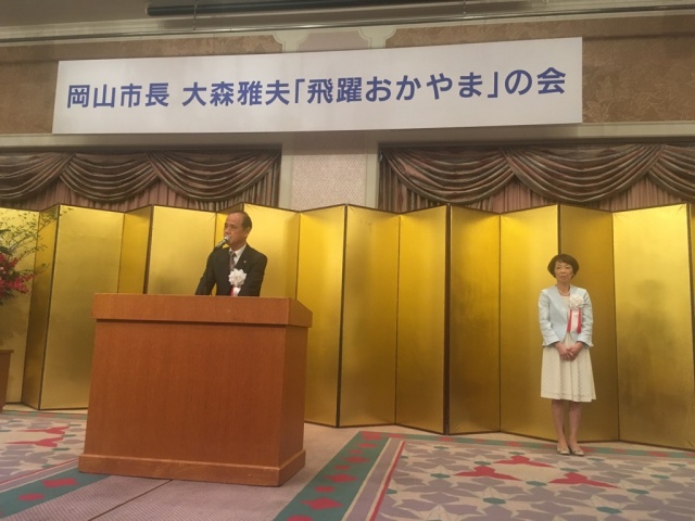 その後、『飛躍おかやま』の会へ。大森市長の当選後初の会で、岡山県内の政財界などの皆さんが一同に集まり、盛大に開催されました。