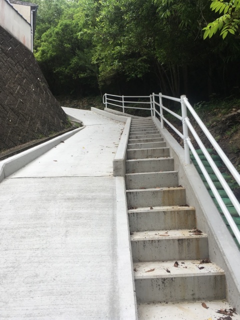 その後、現場へ。長い間お待たせしていた市民要望の階段と手すりが完成したので、現場確認へ。高齢の方がよく通行されるので、多くの方に喜ばれています。