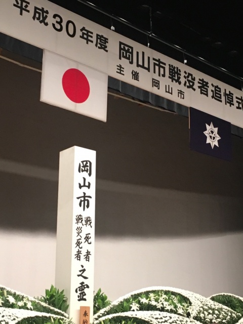2018年06月29日(金) 活動日記 戦没者追悼式典 朝より岡山市戦没者追悼式典へ。73年前、岡山空襲が行われ多くの方が亡くなり、多くのものが失われました。あの悲劇を二度と繰り返すわけにはいきません。その後、市役所へ。市民相談の件で職員さんと打ち合わせ。その一つで精霊送りの収集の問題が、地域の要望通りとなり、解決されました。その後、市民宅へ。地域の話もしましたが、やはり選挙の話となります。夜は会合と懇親会へ。仕事でお世話になっている皆さんと、初めてゆっくり話をしましたが、良い人ばかりでこの会社のアットホームな雰囲気を感じました。