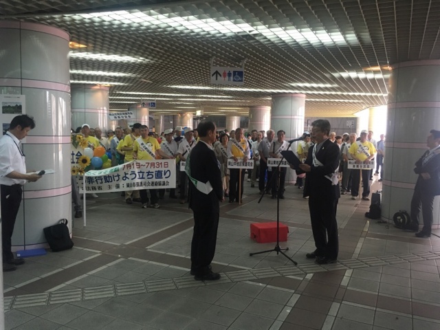 途中、パレードへ。岡山表町商店街を、市長や岡山観察所長や保護司の皆さんなどと『社会を明るくする運動』PR。熱い中、再犯防止など訴えながらパレードをしました。