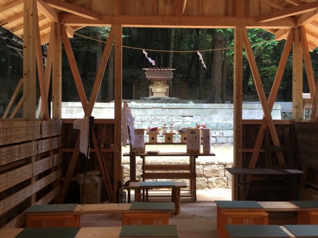 その後、竣工式へ。数年前に地元の方より、尾治針名眞若比?神社の再建の要望が上がり、この度400名を超える方からの寄付で800万円を越える金額が集まり、本殿・拝殿・石段の手すりなどを綺麗にしました。地域の協力の賜物です!これからも地域の安全を見守ってくれるように祈ります。
