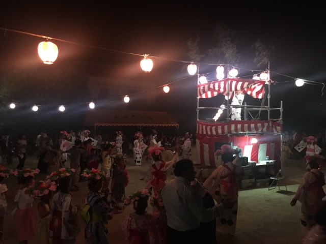 夕方よりお祭りのはしご。まずは津島児童学院主催のお祭りで、皆さん楽しそうでした。その次に地元の『はっさく祭り』へ。老若男女が岡山市の無形文化財である八朔踊りなどを踊り楽しんでいました。私は地域の皆さんと一緒に、フライドポテトなどを販売し、終了後は片付け。今夜も約500名の方にお越し頂き、子ども達にとっては良い想い出が出来たはずです。皆さん、本当にお疲れ様でした。