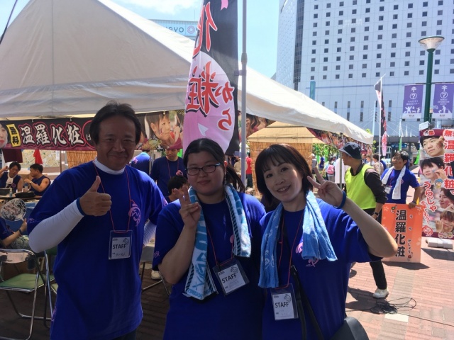 2018年08月04日(土) 活動日記 うらじゃ&作品発表会 朝よりうらじゃ初日へ。もう10年になりますが、毎年裏方としてボランティアをしており、今年は温羅化粧ブースへ。朝礼より皆さん楽しそうに、今年のうらじゃを盛り上げる決意を確認!