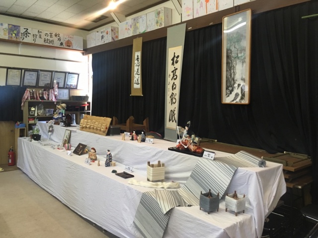2018年08月04日(土) 活動日記 うらじゃ&作品発表会 化粧ブースの準備が終了後、作品発表会へ。谷万成町内会と万成病院の関係者の皆さんが、自分達が造られた素晴らしい作品を展示されています。明日も開催していますので、ぜひ谷万成公会堂へ足をお運びください。