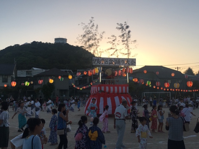 その後、盆踊りのはしご。そのひとつが地元のはっさく踊りです。学区の大切な伝統文化の踊りで、今年で9回目。多くの地域住民に拡がっています。関係者の皆さん、本当にお疲れ様でした。