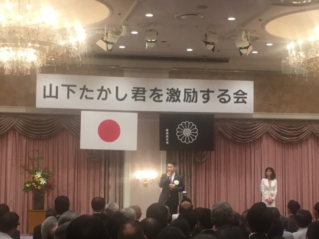 その後、励ます会へ。山下たかし代議士の励ます会で、会場に入りきれないくらいの大盛会。山下代議士は再犯防止や空家対策などの議員立法で多大な貢献をしておられます。