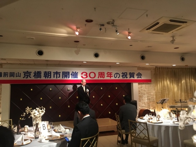 その後、京橋朝市30周年祝賀会へ。平成元年9月に初回を開催し、当日は大雨。今はすれ違うのに苦労するくらいの大賑わいとなっている、とのあいさつが。月1回、年末1回で計13回。これを30年間続けておられることには敬意を表します。また、会場で伊原木知事と話を。7月豪雨の被害や今後の対策などについて意見交換をし、お互い市民・県民のために頑張ろう!と誓い合いました!!