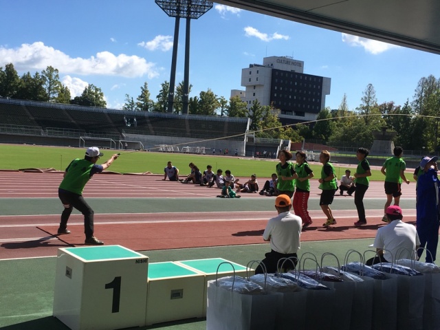 その後、市民体育大会へ。体育の日に相応しい晴天の中で、盛大に開催され、熱戦が繰り広げられました。優勝された御野学区の一体感には感動さされました!おめでとうございました!!