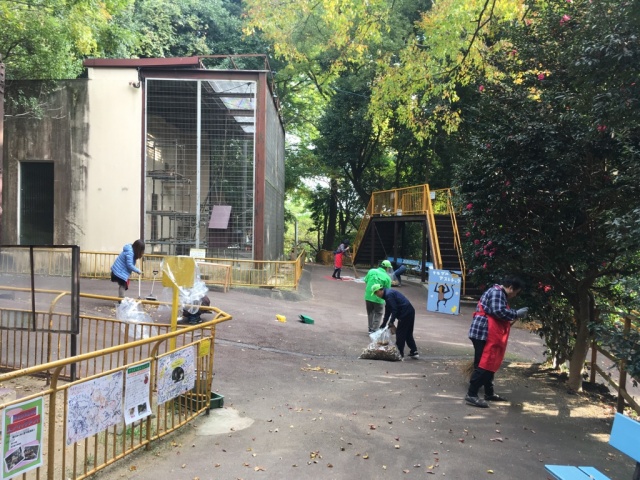 朝より池田動物園の清掃へ。郵便局局長会・婦人会の皆さんと昨年に続き2回目の清掃活動です。110名を超える皆さんが、広い園内を手分けして清掃したこともあり、落ち葉などがきれいになりました。このような活動が池田動物園にとっては必要です。