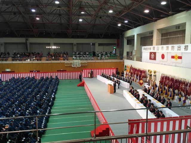 朝より消防出初式へ。片山最高顧問や山下法務大臣など多数の来賓と規律正しく整列された団員が集い、盛大に開催されました。消防局長の挨拶の中で、『7月豪雨では砂川の氾濫、津島福居の土砂崩れなど・・・』と。あの時には消防団員・消防団の皆さんには本当にお世話になりました。