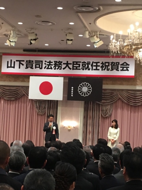その後、祝賀会へ。山下法務大臣の就任祝賀会が盛大に開催されました。衆議院議員になる前に、知人等を紹介した方が当選され、大臣になられました。やはり嬉しいです!今回の祝賀会には、私と同じ気持ちの方々が多く集まったはずです。これからの活躍を期待します。