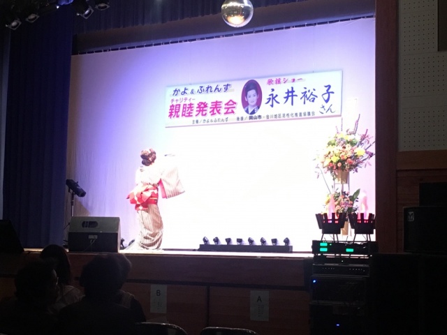 2019年04月28日(日) 活動日記 親睦発表会 朝よりソフトの練習へ。4年生以下の未来の我が団を背負う選手たちです。仲良く楽しくやっていました。その後、中島ブロイラーさんへ。買うまでに20分程並びましたが、美味しい焼き鳥を頂きました。このような地域名物(?)がもっと増えれば、活性化策となりそうです。その後、親睦発表会へ。300人を超える方々が歌や踊りを楽しんでおられました。途中、演歌歌手の永井裕子さんの歌謡ショーも聞かせて頂き、プロ歌手の迫力に感動!