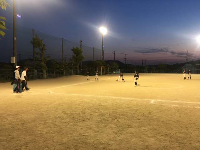 夜は激励へ。今週末の全国大会予選に出場する岡山リトルエンゼルスですが、ナイター練習しているところへお邪魔。少し寒い中ですが、みんな元気です。優勝することを祈ります。