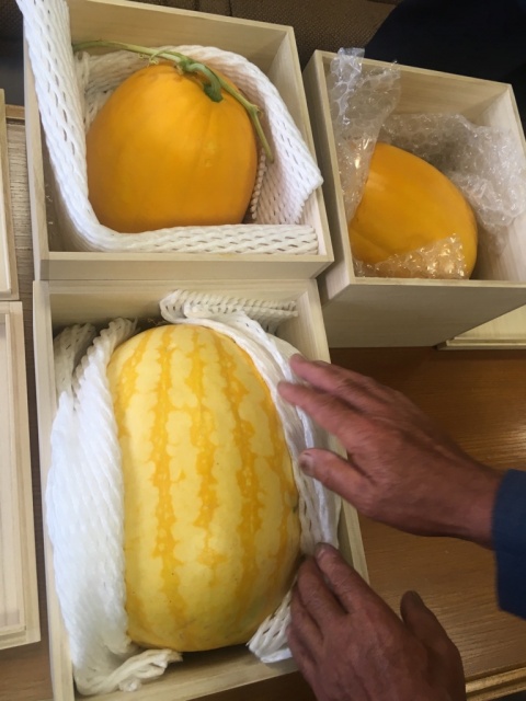 途中、来客と市長室へ。大森市長へ『ゴールドスイカ(仮称)』の進呈。なぜか出来た緑ではなくゴールド色のスイカで、来年の東京オリンピック・パラリンピックで金メダルが取れるように、と。もしかすると、岡山の名物となるかもしれません・・・!