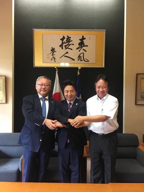 2019年10月08日(火) 活動日記 交通安全&岡山芸術交流 途中、片岡総社市長が表敬。議長室で話をしているところへ、先日の選挙のお礼などのために来られました。JR桃太郎線のLRT化などについて意見交換。お隣の市ですので、共に発展しなくてはなりません。