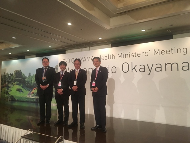 その後、G20岡山保健大臣会合へ。岡山駅周辺は警備や雨の関係もあり大渋滞。ギリギリホテルへ到着しましたが、今度は厳しいセキュリティチェック。やっと会場へ入れ、次に外国のお客様。30か国以上約200名の方が集まり、盛大に開催されました。美味しい料理はもちろん、琴や踊りなど、外国のお客様は非常に満足した表情でした。大きなトラブルもなく、無事に1日目のウエルカムレセプションは終了!関係者の皆さん、お疲れさまでした。